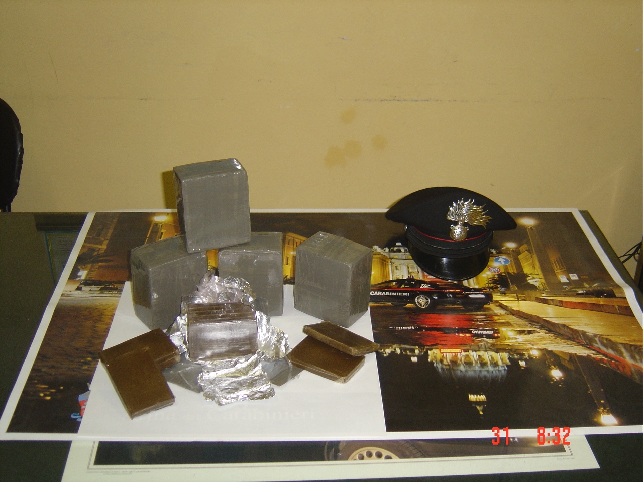 Stavano viaggiando su una vecchia auto, dalle precarie condizioni, tanto che i Carabinieri hanno deciso di fermare il mezzo per un regolare controllo pensando che potessero riscontrare qualche violazione del codice della strada. Al momento del fermo, i 2 uomini che erano a bordo di una Hiunday Lanos, hanno mostrato nervosismo e un comportamento sospetto. I militari hanno riscontrato la mancata revisione dell’auto e dai successivi accertamenti sull’identità degli uomini, hanno verificato che uno di loro risultava essere un pregiudicato per reati inerenti allo spaccio di droga. I carabinieri hanno dunque proceduto alla minuziosa perquisizione del veicolo, all’interno del quale, nel vano portabagagli, hanno rinvenuto 5 panetti di hashish dal peso complessivo di 5kg. e 100 gr.