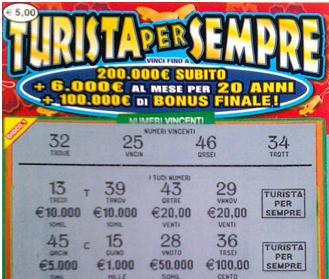 Soltanto pochi mesi fa un 30enne aveva grattato un turista per sempre vincente presso Orte, questa volta il tagliando vincente è stato venduto dal rivenditore del distributore all'inizio della marattana direzione Narni “Ristocaffè”. Il fortunato avrà 200 mila euro subito, 6 mila euro al mese di rendita, e un bonus finale di 100 mila euro. Non si conosce l'identità del fortunato milionario, né la rivendita ha alcun sospetto su chi possa essere.