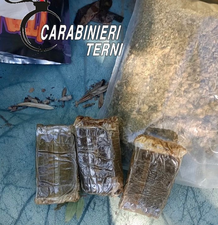 I Carabinieri di Terni hanno rinvenuto 300 grammi di hashish e circa 110 grammi di marijuana in strada della Civitella.