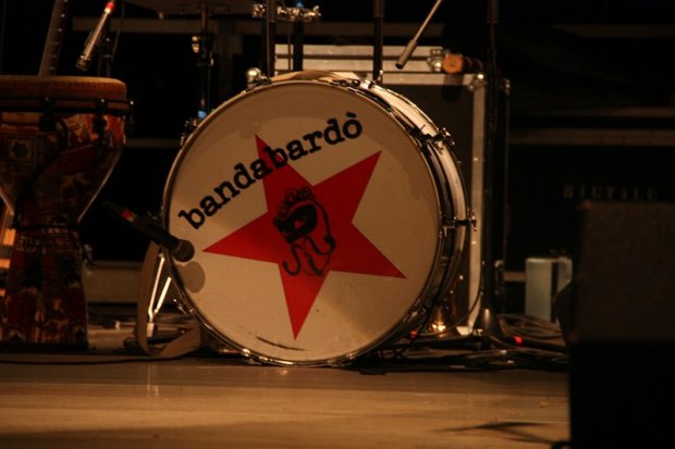 Sound check completato, luci spente e attacca subito il frenetico ritmo della Bandabardò. Neanche il tempo di vederli entrare che inizia il 'pogo' delle centinaia di giovani, ma non solo, accorsi per partecipare al concerto della band forentina. Già partecipare, perchè ai concerti della 'Banda' non si va semplicemente per ascoltare, ma si viene inevitabilmente trascinati dentro la filosofia di musica, e di vita, di Enriquez e compagni che amano stare 'insieme' al pubblico, invitandoli a balli e piccole coreografie da eseguire a tempo di rock-folk. Così capita che una signora di mezzaetà si ritrovi a ballare incollata a un giovane 20enne, il tutto senza malizia, ma con la sana voglia di saltare, lasciarsi andare e dimenticare, per un attimo almeno, la giornata. La musica della Bandabardò, come si legge nel suo manifesto, “ha sposato in pieno la causa dei fricchettoni e del loro leader Fernandez. Siamo per la rivalutazione dei rapporti umani, dei miscugli razziali e culturali. Lottiamo per un mondo a misura di donna e di bambino e per vedere un giorno trionfare allegria e gentilezza”. Se questa era la premessa, lo svolgimento ha mantenuto perfettamente la traccia del tema, non un minuto di pausa, ma l'allegria della Bandabardò ha contagiato il pubblico tutto in un fiato, lasciandolo senza respiro, che ha ricambiato la musica con l'energia che ogni artista sul palco vorrebbe sentire. La band si è presentata nella sua formazione attuale: Erriquez – Enrico Greppi – voce, chitarra; Finaz – Alessandro Finazzo – voce, chitarra; Donbachi – Marco Bachi – basso; Orla – Andrea Orlandini – chitarra, tastiera; Nuto – Alessandro Nutini – batteria; Cantax – Carlo Cantini – preproduzione; Ramon – Jose Ramon Caravallo Armas – percussioni, tromba – la stessa che nel 2010 aveva inciso l'album “Sette x uno” insieme a Giobbe Covatta, enzo Iacchetti, Ascanio Celestini, Dario Fo, David Enia e David Riondino per aiutare la campagna umanitaria e benefica di “Save the Children”. La Bandabardò è sempre stata sensibile e vicina alle associazioni umanitarie e anche stasera alcuni dei componenti del gruppo indossavano maglie di “Emergency”, a testimonianza che la musica può, e dovrebbe essere, un mezzo per diffondere la cultura del pacifismo e della non violenza. Almeno per una sera, a Terni, questo messaggio è arrivato dritto al cuore della gente e come dice la Banda 'E se piove almeno mi vedo l'arcobaleno”