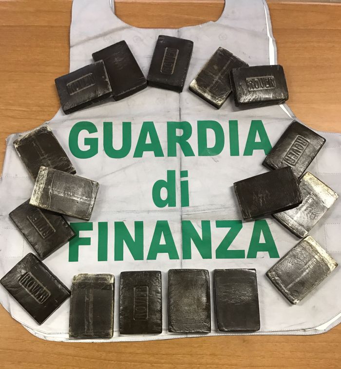 Una volta fermato e trovato in possesso di oltre cinque grammi di marijuana, l’uomo ha manifestato un evidente stato di nervosismo tale da indurre i Finanzieri ad approfondire il controllo. La successiva perquisizione locale presso un garage in uso all’extracomunitario, permetteva di rinvenire, abilmente occultati, diciassette panetti di hashish da 100 grammi ciascuno.