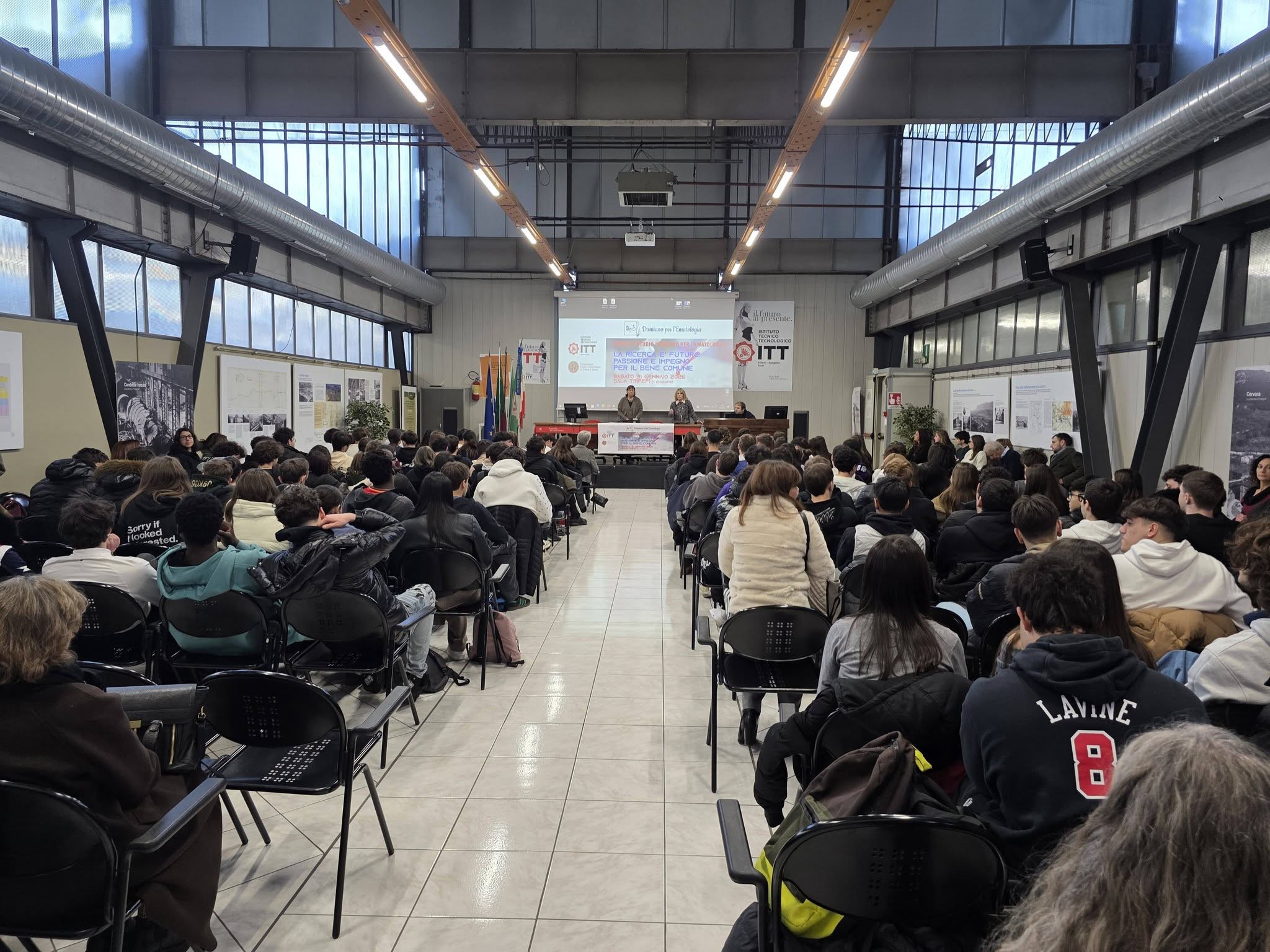 È stata poi la volta di alcuni degli ex studenti vincitori della borsa Damiano per l’Ematologia degli scorsi anni tra cui Anastasia Norfolk, studentessa dell’ITT vincitrice nel 2024 che ha parlato della propria esperienza universitaria e dell’importanza del sostegno ricevuto. Hanno lasciato la propria testimonianza anche Lucia Ventura del Liceo Classico Tacito e Leonardo Stella dell’ITT, vincitori del 2025.