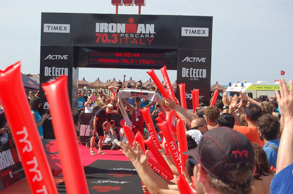 La domenica del Terni Triathlon è stata impreziosita dai risultati dei “4 moschettieri” che hanno portato il drago rossoverde fino al traguardo del prestigioso e durissimo IronMan 70.3 di Pescara. Capitanati dall’esperto Luigi Tartaglia, Francesco Cappanelli, Francesco Red Bull Scali e Riccardo Giubilei, esordiente sulla distanza, hanno sfidato vento e caldo torrido in una delle gare più selettive d’Italia e si sono portati a casa l’ambita medaglia di finisher. Oltre 2500 agguerriti partecipanti, per un triathlon davvero coinvolgente e seguito da migliaia di spettatori: la partenza alle ore 12,30 dalla spiaggia di Pescara, per una frazione di 1900 metri di nuoto che gli atleti hanno affrontato divisi in batterie da 400. Molta la corrente che ha reso dura la frazione; i triatleti, usciti dall’acqua, si sono lanciati in zona cambio per salire sulle bici ed affrontare i 90 km previsti, resi davvero impegnativi dalla salita e dal forte vento contrario che ha fatto una durissima selezione. Giusto il tempo di scendere dalla bici, che i triatleti hanno affrontato l’ultima fatica: 21 km di corsa nel caldo soffocante, per 4 giri di un percorso tra due ali di folla che non hanno mai fatto mancare il supporto ai partecipanti.