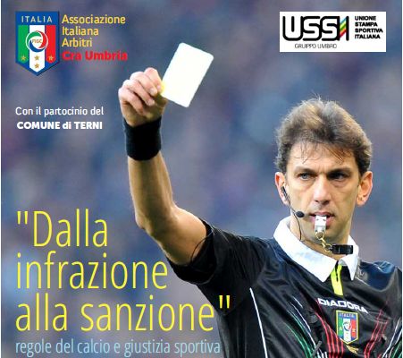 Come si arriva dal cartellino giallo a quello rosso e poi alla squalifica? Quali sono le dinamiche ed i procedimenti che conducono alla sanzione sportiva? Se ne parlerà nel convegno “Dall'infrazione alla sanzione- Regole del calcio e giustizia sportiva”, in programma a Terni martedì 26 febbraio dalle ore 17 a Palazzo Gazzoli. All'incontro, organizzato dal Gruppo Umbro dell'Ussi (Unione Stampa Sportiva Italiana), e dal Cra (Comitato Regionale Arbitri), intervengono Francesco Amelia (presidente del Cra Umbria), Remo Gasperini (presidente Ussi Umbria), gli arbitri internazionali Paolo Tagliavento e Silvia Tea Spinelli e il giudice sportivo del Cru – Lega Nazionale Dilettanti, avvocato Marco Brusco. Modererà l'incontro il giornalista e consigliere Ussi Giorgio Palenga. Oltre alle dinamiche specifiche, saranno illustrate, con l'uso di filmati e diapositive, anche alcune casistiche legate a temi di attualità.