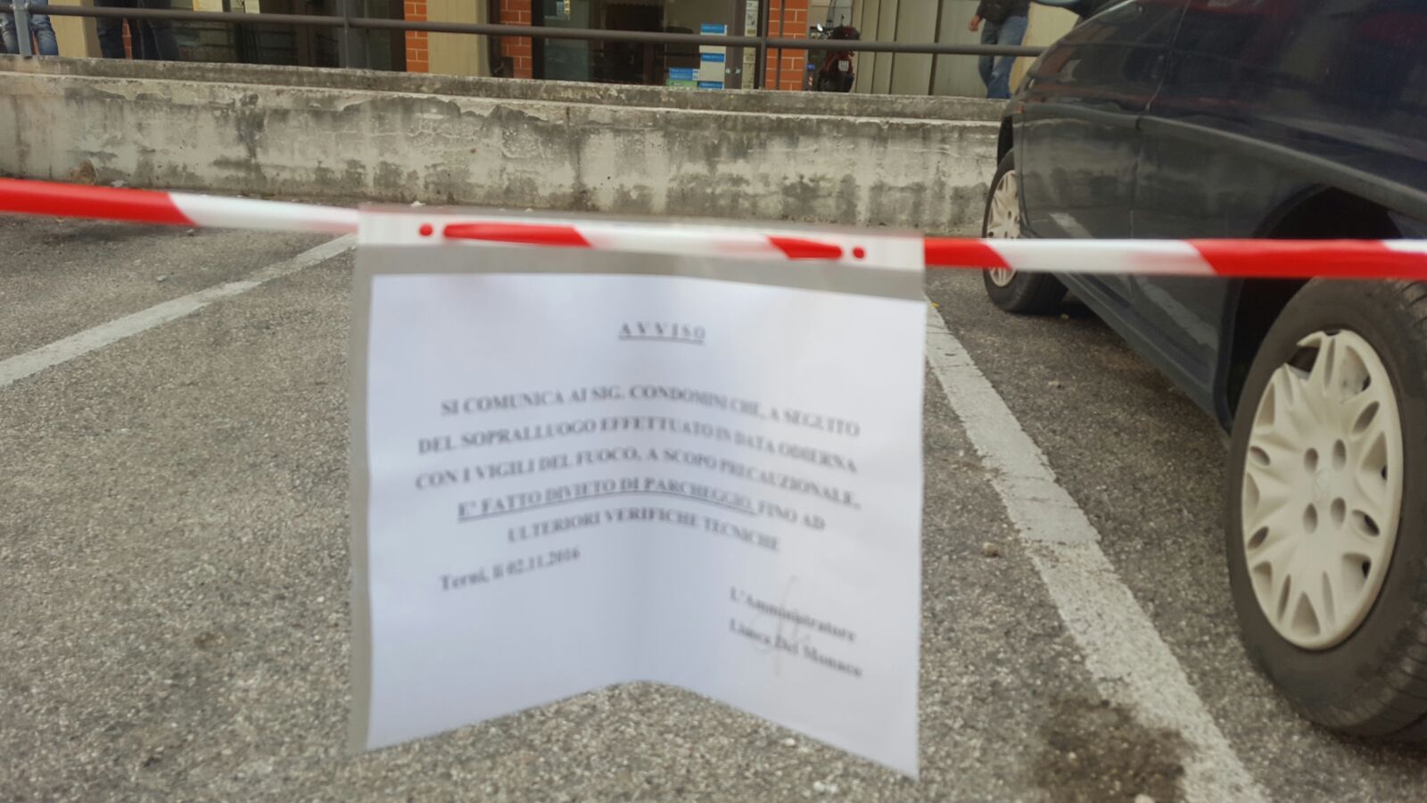 A due giorni di distanza dal violento terremoto che ha scosso l’Italia centrale, a Terni un’area riservata al parcheggio della autovetture è stata momentaneamente transennata e chiusa.