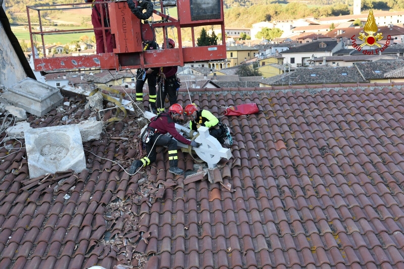 Gli stessi vigili del fuoco hanno anche provveduto ad effettuare controlli agli edifici che nei giorni scorsi erano stati oggetto di specifici interventi per la messa in sicurezza con l’esecuzione di interventi di riduzione della criticità. Sono gli interventi eseguiti d’intesa con il personale MiBAC con l’impiego di legname, tiranti e profili in acciaio effettuati a Castelluccio di Norcia per la messa in sicurezza o meglio per la riduzione della criticità strutturale per il campanile della chiesa di Santa Maria delle Grazie, sempre a Castelluccio per due edifici le cui parti pericolanti impedivano l’uso delle limitrofe via di accesso all’intero aggregato urbano potendo così ridurre l’entità delle zone inaccessibili (zone rosse).
