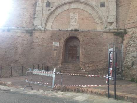 Rimane chiuso il tratto della Rocca Paolina dove, nel frattempo, è stato allestito anche un ponteggio. “Per eseguire verifiche determinate dagli eventi sismici la Rocca Paolina rimarrà chiusa”. Recita così il cartello posto al cancello di piazza Italia e alle transenne sotto piazza del Circo e sul lato di piazza Italia, si possono notare o pali di un ponteggio di sicurezza.