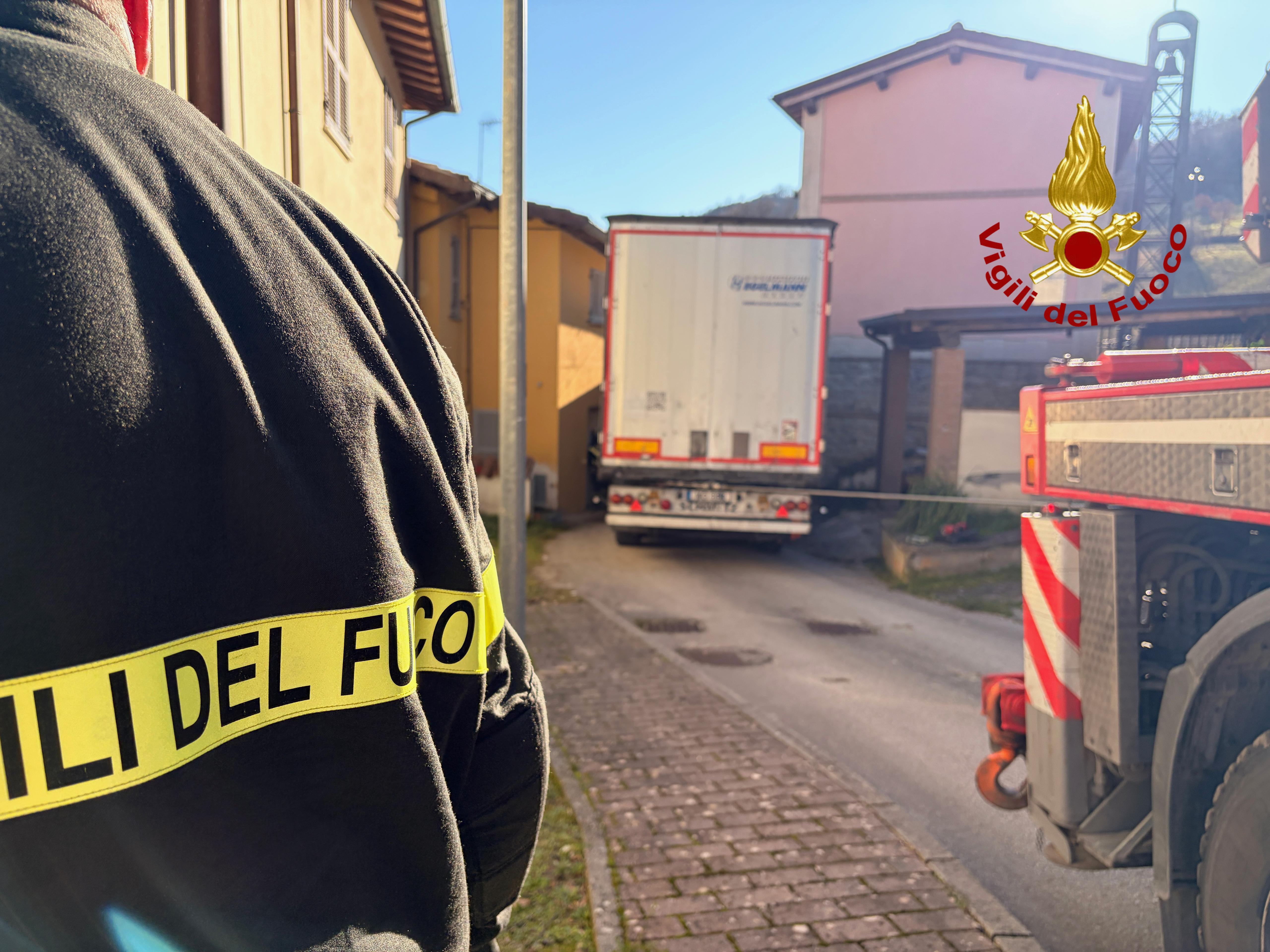 I Vigili del fuoco di Gaifana sono intervenuti nel Comune di Nocera Umbra, nella frazione Isola, per il recupero di un TIR rimasto incastrato in una strettoia tra un’abitazione e la vecchia Chiesa del paese.