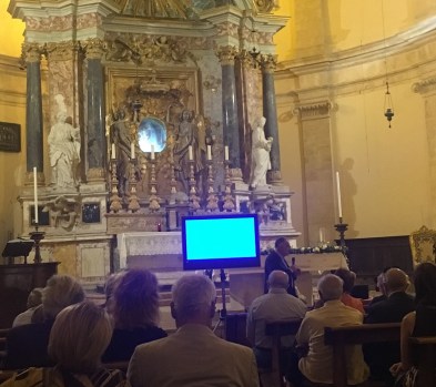 All’interno delle iniziative per la festa della Natività della Vergine, sabato pomeriggio il Tempio di Santa Maria della Consolazione ha ospitato un interessante convegno sugli edifici religiosi cupolati a pianta centrale del Rinascimento. Dopo l’introduzione di Francesco Moschini, hanno portato il loro contributo Federico Bellini (che ha parlato dell’ideologia umanistica del tempio moderno), di Claudio Strinati (sull’opera di Raffaello Sanzio). Paolo Belardi ha insistito sul patrimonio dell’Umbria anche al di fuori del periodo medievale, invitando ad aprirsi alla modernità e ricordando il censimento fatto, che ha portato ad identificare nella regione 50 meravigliosi edifici di culto a pianta circolare. Degli “ordini e disordini” della Consolazione, cioè del progetto originario e delle modifiche che sono state apportate al Tempio, sia in fase di realizzazione che di restauro, ha parlato infine Paola Zampa.