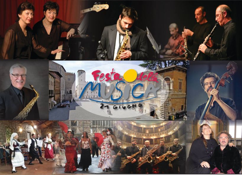 La Festa Europea della Musica a Todi- Il progetto del Centro Studi Della Giacoma consiste nel coinvolgere musicisti italiani e stranieri in una staffetta musicale dove la musica etnica, folk, insegue il jazz, swing, la musica flamenca, ellenica e quella per banda; dove le piazze, le strade, le terrazze, gli androni e i cortili della città diventano scenari naturali, riaperti e riscoperti dai cittadini e dai turisti. L’Aria si colorerà di Musica!