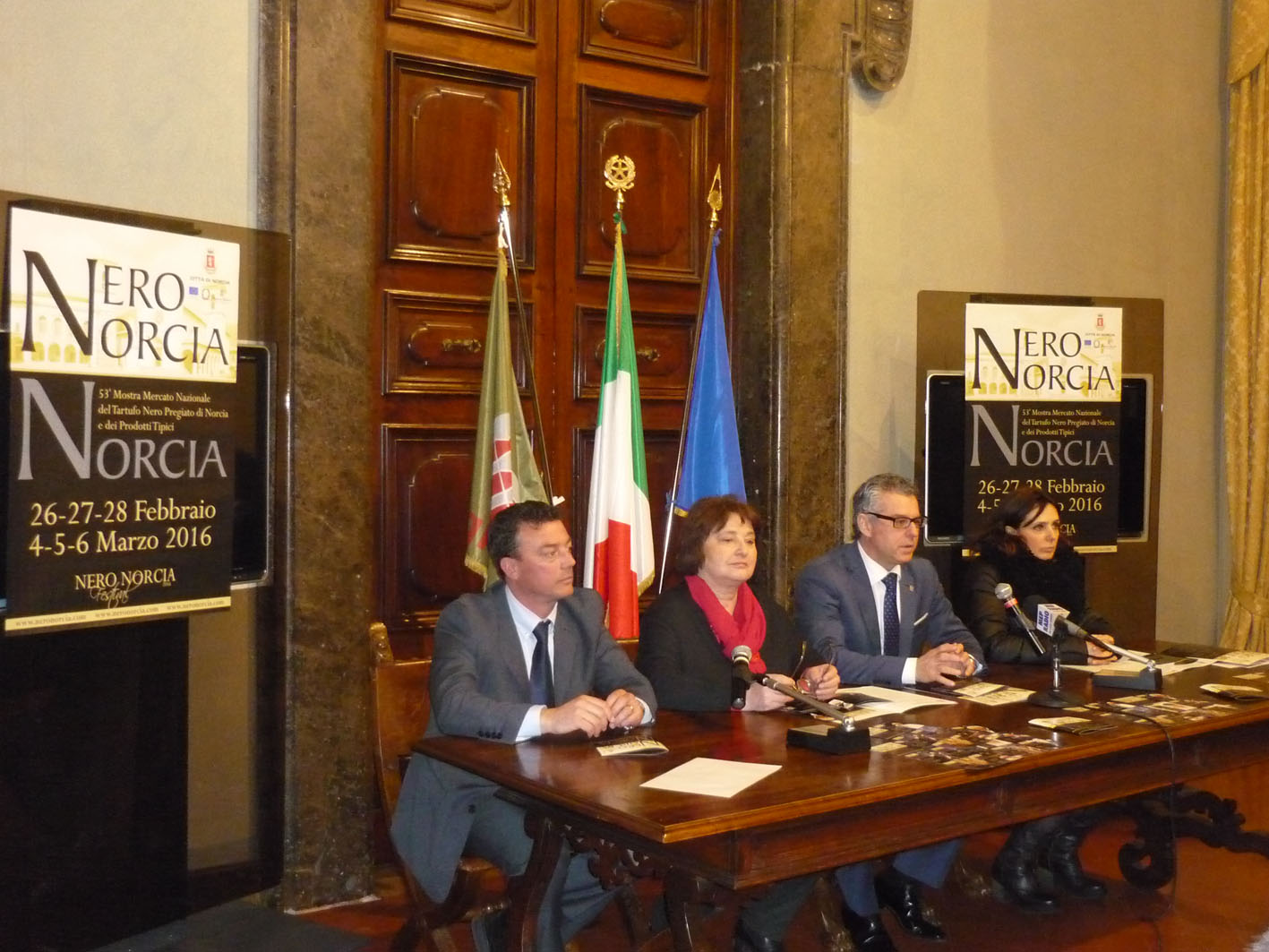 Si preannuncia un vero e proprio fiume in piena, quanto a proposte e ad eventi, la 53ª Mostra Mercato Nazionale del tartufo Nero pregiato di Norcia e dei prodotti tipici, in programma nella città di San Benedetto dal 26 al 28 febbraio e dal 4 al 6 marzo e presentata ieri mattina a Perugia, a Palazzo Donini, dal sindaco di Norcia Nicola Alemanno, affiancato dall’assessore alle attività produttive Giuliano Boccanera e dalla dirigente dell’Omnicomprensivo “De Gasperi-Battaglia” di Norcia Rossella Tonti. A fare gli onori di casa l’assessore regionale Fernanda Cecchini, appassionata sostenitrice del settore agricolo e agroalimentare della regione Umbria “che fa dell’eccellenza – ha sottolineato – il suo punto forza in campo nazionale e internazionale”.