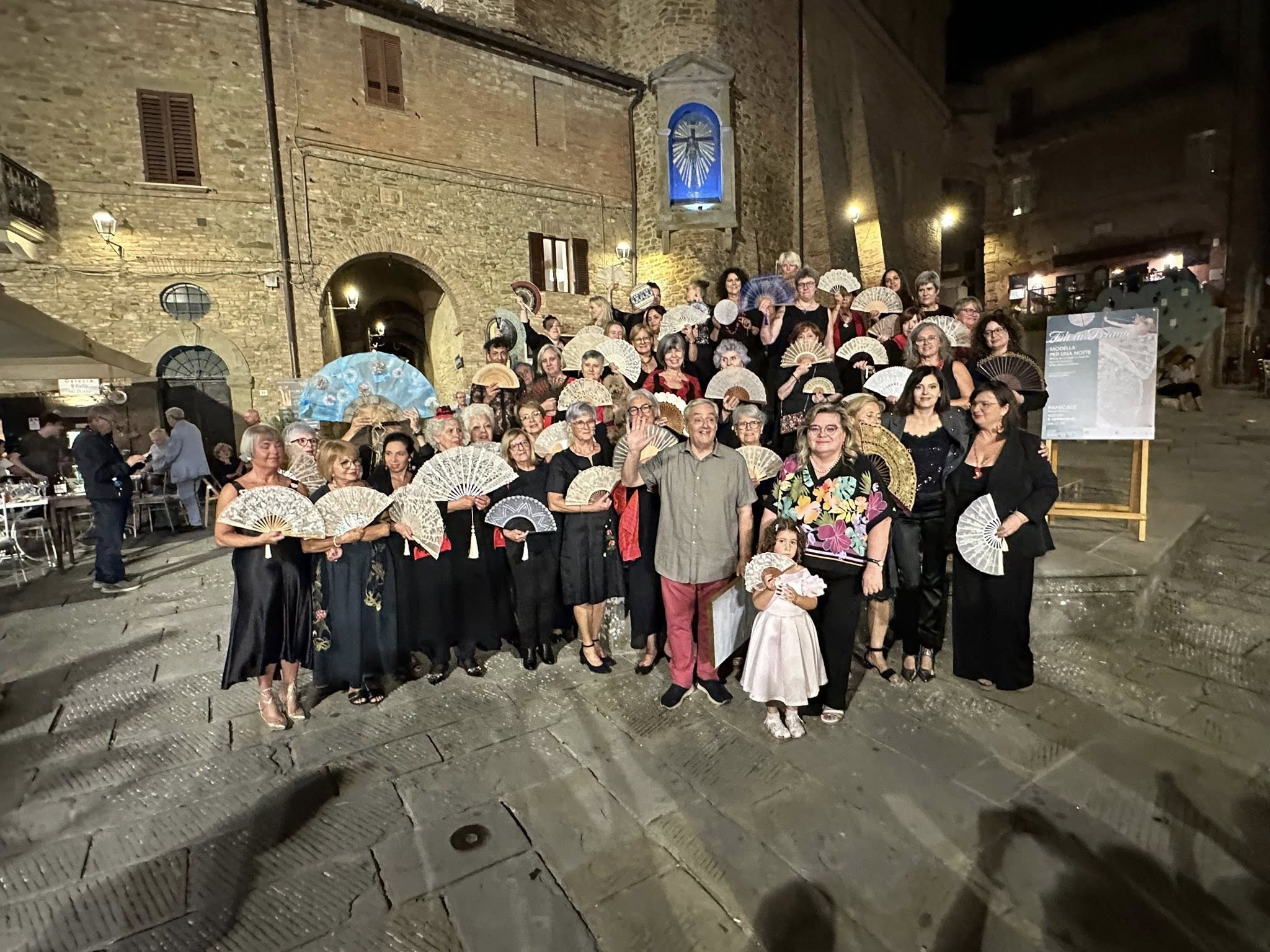 Ambitissimi e seguitissimi anche tutti i laboratori per i bambini e per gli adulti, specie quello sul ventaglio (strumento-tema di questa edizione) con un workshop tenuto dal Maestro Fabrizio Fabbroni; oppure il corso in ricamo su tulle per bambini ma anche tanti altri per tutto il periodo. Grande performance poi la sfilata di moda, coordinata dalla bravissima conduttrice Anna Lisa Baldi (volto RAI di Camper, famosa trasmissione nell’ambito di Linea Verde Estate”) incentrata proprio sui ventagli realizzati in tutte le tecniche e “indossati” dalle artigiane che hanno creato i manufatti. Tutto esaurito anche per le iniziative “Cucire il Teatro: dal Bozzetto al palcoscenico” a cura dell’Associazione Téathronmusikè in collaborazione con il Pan Opera Festival e per il “Concerto di Fuselli” diretto da Maria Elena Fanfani e accompagnato dal famoso maestro di chitarra Flamenca Juan Lorenzo e dalla bravissima ballerina di Flamenco Ana Sinal in collaborazione con l’International Green Music Fest. “A tal proposito continua Caproni – un ringraziamento speciale va al gruppo di merlettaie del macramè che fa riferimento al Museo di Castelgomberto, coordinate dalla bravissima Maria Luisa Tonello, referente per l’Associazione “Dopo di noi”, che anche quest’anno ha voluto omaggiare Panicale di un lavoro straordinario, ovvero una grande cartolina che raffigura la piazza di Panicale arricchita da opere in macramè. L’opera sarà collocata, come quella in macramè dedicata al Perugino lo scorso anno, al Museo del Tulle. A loro anche il merito degli allestimenti con istallazioni in macramè che hanno ulteriormente arricchito le decorazioni dell’antica fontana a cura di Cristina Arcioni, catturando l’attenzione di tutti”.