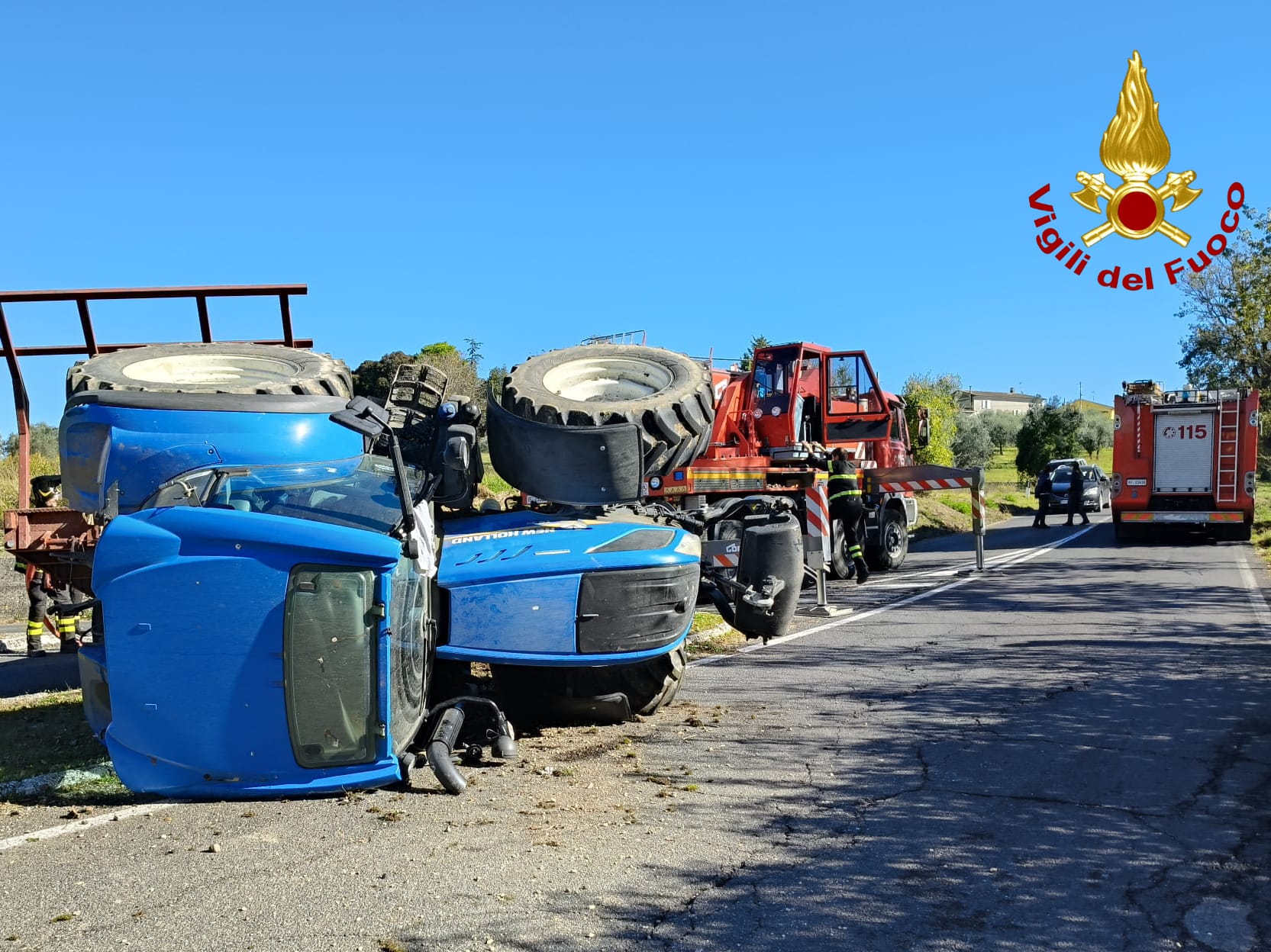 Poco prima delle ,11,00 di questa mattina, 4 novembre, sulla SP 65 che porta dalla città alla zona industriale di Vascigliano, in prossimità del bivio per Sant’Antimo, un trattore agricolo con a rimorchio un carrello si è autonomamente ribaltato .