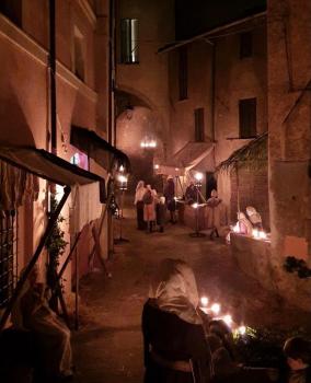 «Ogni volta sembra la prima» racconta emozionata. I turisti che arrivano, le famiglie che passeggiano, i bambini che si stupiscono. Tutto racconta che la fatica ha senso. Le cene medievali, le tavole illuminate, i piatti di un tempo, Le Scene di vita Medievale, gli artigiani che mostrano i mestieri. Ogni singolo gesto è memoria vivente. Le strade si trasformano, i trevani recitano la propria storia, il borgo diventa scena.