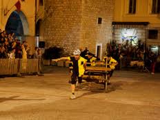 E' tutto pronto per la 33° edizione del Palio dei Terzieri a Trevi: quest'anno però i festeggiamenti saranno limitati in segno di lutto e rispetto per la prematura scomparsa del giovanissimo Joury Coraggi. La tradizionale 'Corsa dei carri' tra i terzieri di Castello, Matiggia e Piano – in programma domani, sabato 5 ottobre alle 21 – aprirà il ricco cartellone di eventi dell’Ottobre trevano, organizzato dall'ente Palio dei Terzieri, Comune di Trevi e Pro Trevi. La gara di velocità, rievoca la tenacia con la quale i giovani trevani fecero riemergere la loro città dalla distruzione del 1214 da parte degli spoletini, per volontà del duca Theopoldo. Una corsa a tempo alla quale partecipano ben venti giovani per ciascun terziere: forza e tecnica, per spingere carri dal peso di 430 chilogrammi, alternandosi in più staffette lungo un percorso di 800 metri che da Porta Nuova si snoda lungo le antiche mura sino alla piazza del Comune. Niente maxi schermi e musica però: la serata si concluderà con la consegna del palio ai vincitori, opera dell'artista Lidio Pepponi. I terzieri si sfideranno anche nella gara dei tamburini – sabato 12 alle 21 – e con il VI torneo nazionale di tiro con arco storico in agenda per domenica 13 alle 9. Domenica apriranno i battenti le tre taverne, da segnalare anche il raduno di auto americane e due eventi per ragazzi: “Scacco al re”, partita di scacchi viventi e i giochi “Alla corte dell’imperatore”.