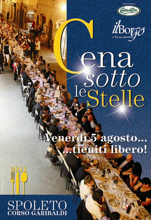 Ultimo giorno per prenotare la Cena sotto le Stelle a Spoleto, che si svolgerà lungo Corso Garibaldi il prossimo Venerdì 5 Agosto.