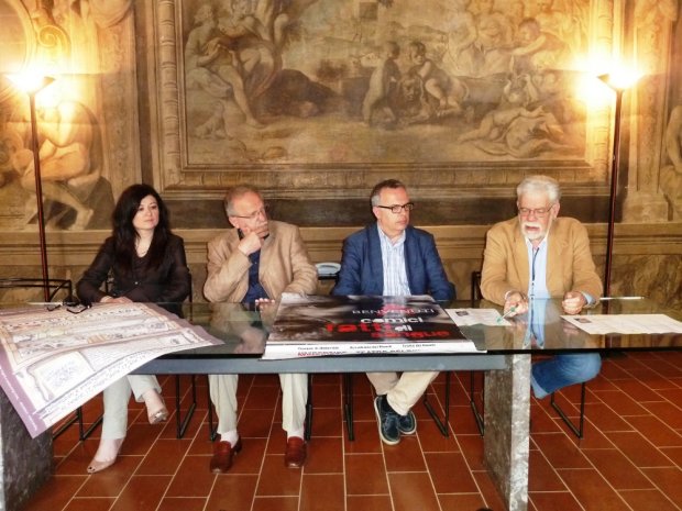 E' stata presentata questa mattina la nuova produzione dell'Accademia dei Riuniti, lo spettacolo “Benvenuti in casa Gori”. Erano presenti il sindaco f.f. Marco Locchi, l'assessore alla Cultura Stefania Bagnini, il direttore artistico del Teatro dei Riuniti Achille Roselletti e il presidente dell'Accademia dei Riuniti Luciano Bettucci.