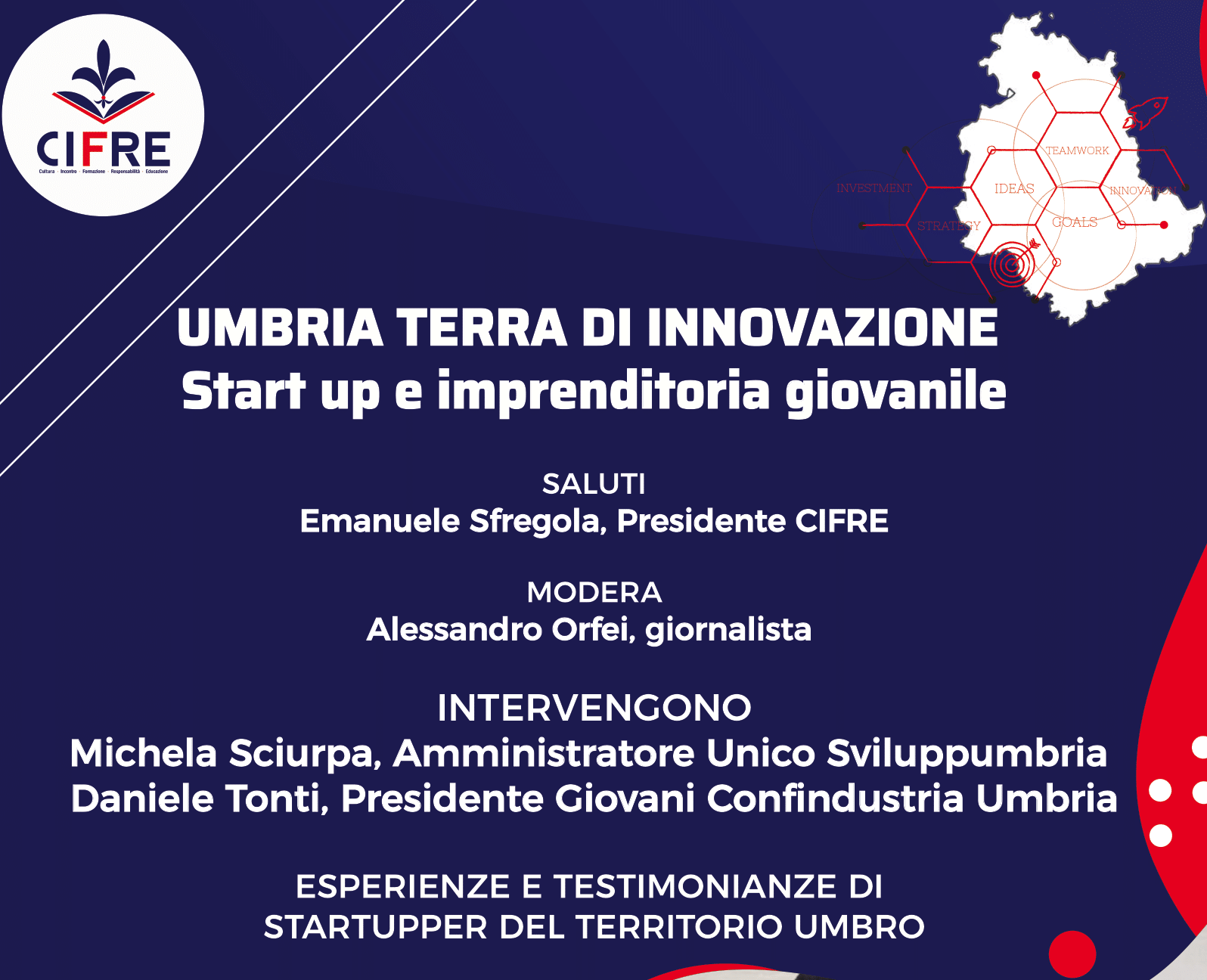 “Umbria terra di innovazione: start up e imprenditoria giovanile“, questo il titolo dell’incontro organizzato dall’Associazione CIFRE che si terrà mercoledì 22 novembre 2023 alle ore 18, presso la sede di Sviluppumbria a Foligno.