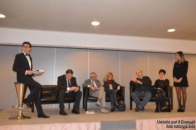 Conclusi i lavori con questa rassicurante affermazione, la serata ha avuto un piacevole decorso conviviale, con un aperitivo a base di eccellenze eno-gastronomiche umbre, offerto da Urbani Tartufi e da Cantina Tili, e poi elegante una Cena di Gala, allietata dagli interventi musicali di un sestetto di ottoni, durante la quale il presentatore Massimo Zamponi ha alternato, con i suoi interventi, i momenti dedicati al gusto a riflessioni sul terremoto, focus artistici, interviste ai personaggi presenti e ringraziamenti di rito.