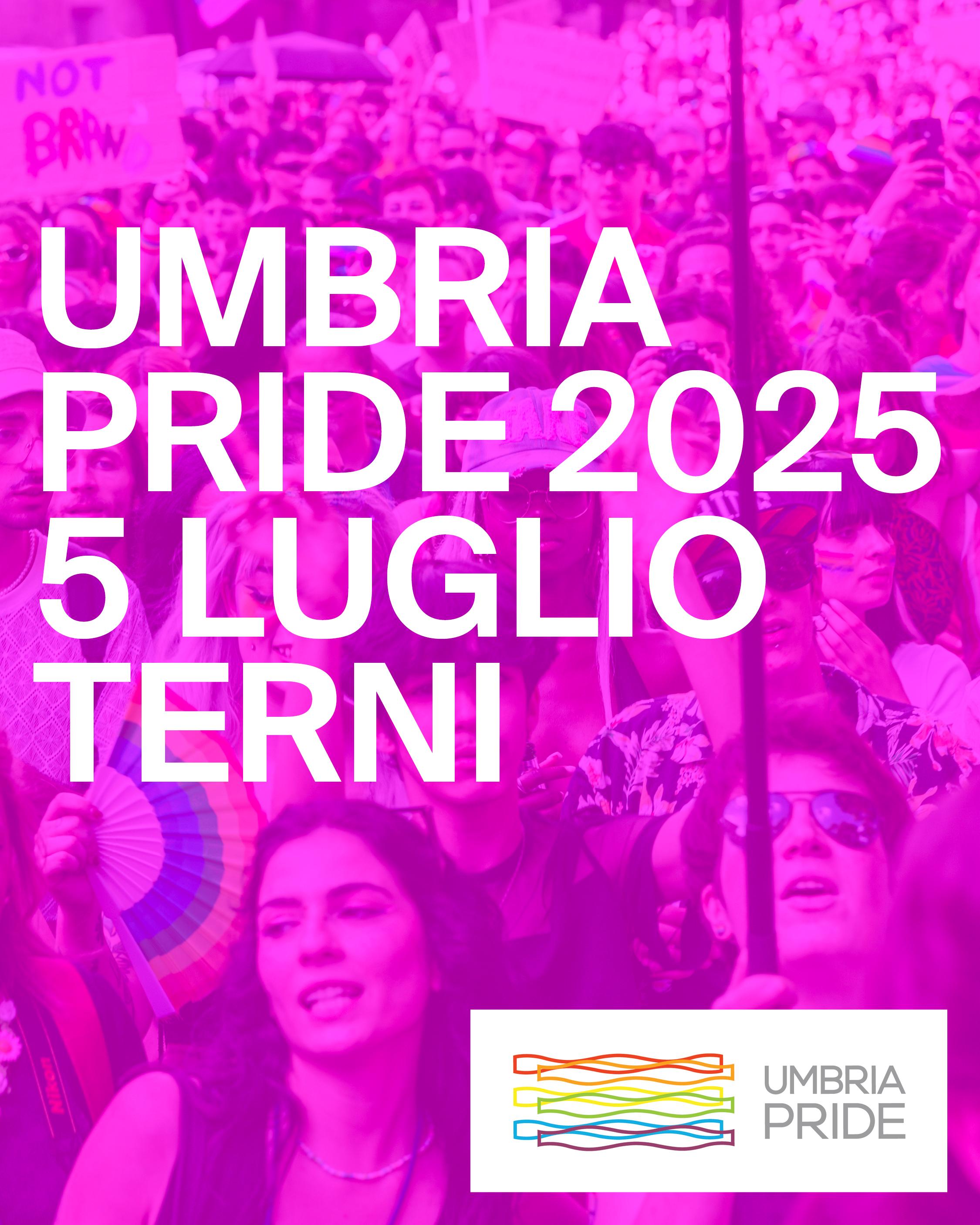 Siamo quindi liete di annunciare che il grande corteo di Umbria Pride 2025 si terrà a Terni Sabato 5 Luglio e sarà preceduto da un mese di eventi, appuntamenti culturali, dibattiti e rassegne in tutta la città e la Regione, organizzate dal Comitato Umbria Pride e da una vasta rete di associazioni, collettivi e centri sociali della città di Terni e di tutta la Regione Umbria.