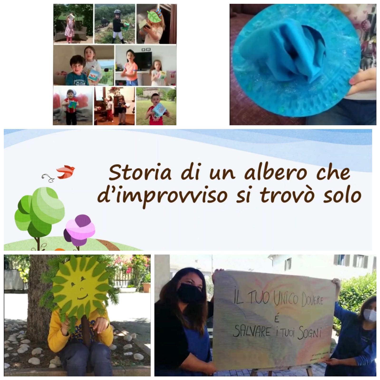 Storie, laboratori, canzoni, filastrocche, magie, schede didattiche e altro ancora hanno accompagnato i bambini e le famiglie durante questo periodo. Sono stati mesi intensi che hanno portato ad una degna conclusione: la realizzazione di una “recita virtuale” dal titolo “Storia di un albero che d’improvviso si trovò solo“.