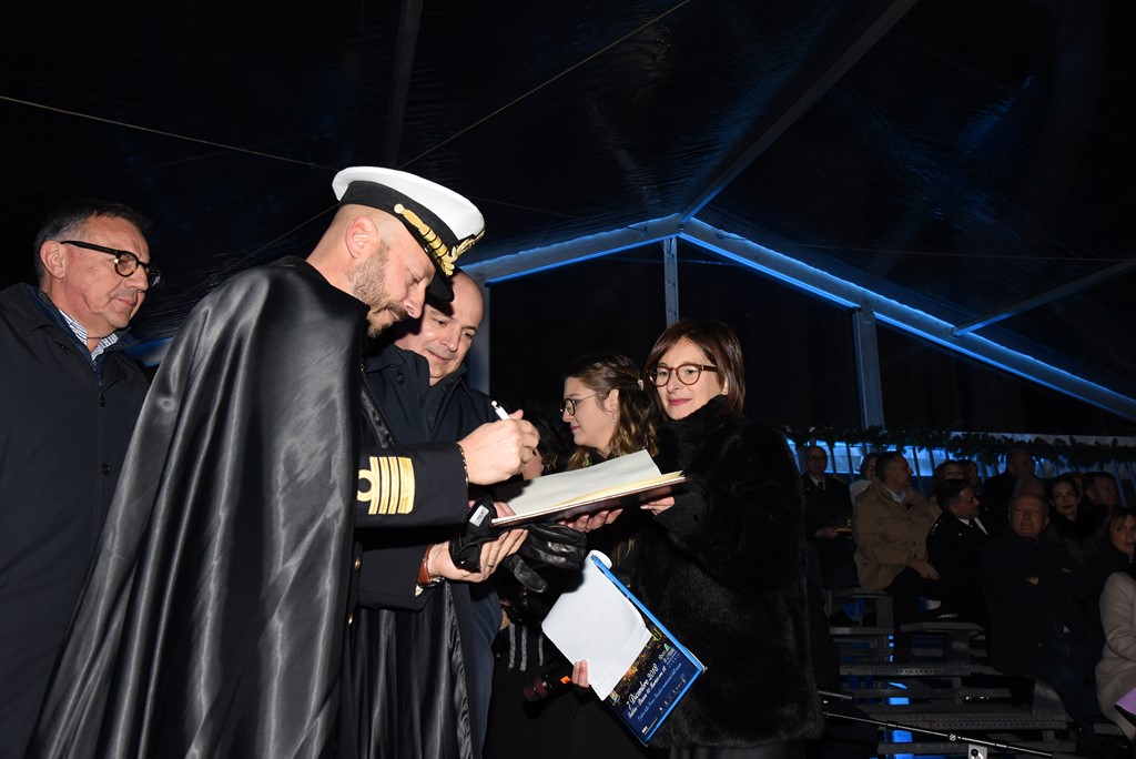 Nel suo messaggio dal palco, Pierotti ha rivolto tre saluti speciali: alla città di Gubbio e alla comunità umbra; agli Alberaioli, “un fantastico gruppo che rende possibile questa magia”; e al comandante Nicasio Falica, accensore 2025 in rappresentanza della nave scuola “Amerigo Vespucci”. Proprio Falica ha sottolineato l’affinità di valori tra Gubbio e la storica nave della Marina Militare: «Quello che vediamo fuori è la realizzazione di qualcosa di grande, ma pochi sanno ciò che c’è dietro… un mondo volontario che valorizza la comunità». Il motto della Vespucci – Non chi comincia ma chi persevera – è risuonato in modo quasi naturale con la storia di 45 anni dell’Albero.