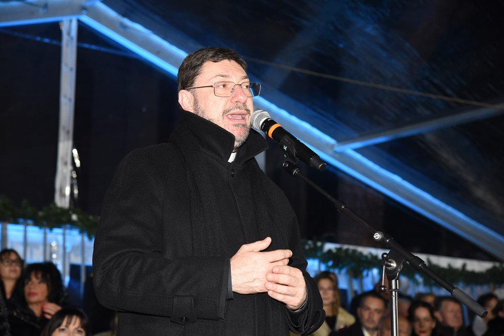 «L’Albero non si acquista, si costruisce. Si costruisce montando luci, intrecciando cavi… ma soprattutto intrecciando mani e sorrisi», ha detto Pierotti nel suo saluto ufficiale.