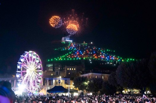 Musica, teatro musicale, coreografie su pattini, interventi istituzionali, collegamenti video e le voci del coro “Cantores Beati Ubaldi” hanno scandito l’avvicinamento al momento clou delle 18.55, quando il monte Ingino si è illuminato davanti a una piazza gremita e a milioni di spettatori collegati via streaming.