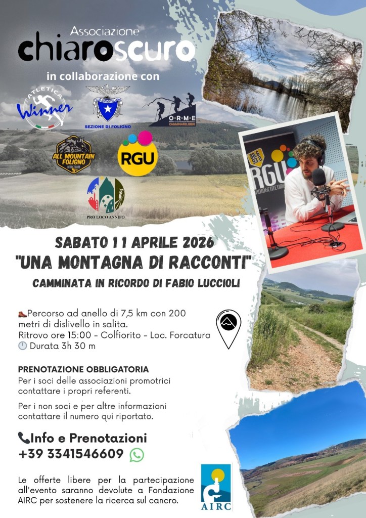 Queste le parole di Claudio Stella, presidente dell’Associazione Chiaroscuro: “L’amore di Fabio per i racconti e per la montagna è stato il punto di partenza per l’idea di questa passeggiata. Incontrarci e raccontare in luoghi amati da Fabio, come Annifo, Colfiorito, Forcatura, ci sembrava il giusto sfondo per poter realizzare una raccolta fondi per AIRC. Abbiamo inoltre deciso di condividere questo evento con associazioni e istituzioni di varia natura, ma tutte legate dall’unione e dall’amicizia fraterna con Fabio, consapevoli che una visione collettiva sia il miglior modo per onorare il ricordo del nostro caro Fabio”.