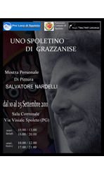 Prosegue fino al 25 di Settembre la Mostra di Pittura di Salvatore Nardelli esposta in Via Visiale. Un giovane artista, nato a Grazzanise in provincia di Caserta, aveva scelto Spoleto come sua città di adozione. Giovanissimo ha lavorato presso l’Istituto d’Arte di Spoleto ma già da alcuni anni aveva avviato la sua produzione artistica. Scomparso nel mese di Gennaio, la Pro Spoleto su proposta dei colleghi e della famiglia, ha voluto onorare questo cittadino acquisito, ma soprattutto un artista vero del quale, pur non potendo ammirare le sue opere di artista, i quadri esposti tracciano un profilo eloquente sulle sue capacità e sulle sue doti umane e morali.