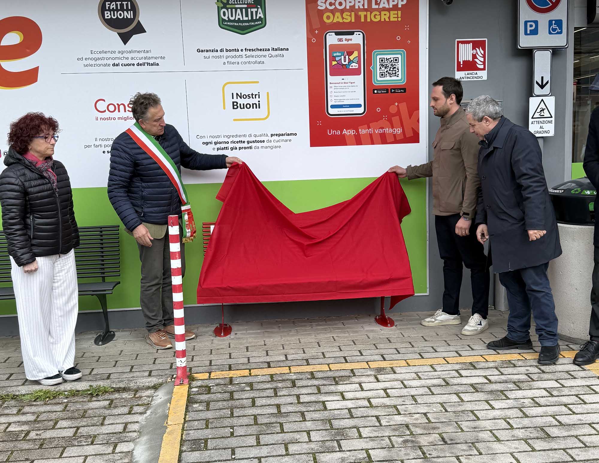 Una panchina rossa in memoria di Laura Papadia davanti al supermercato dove lavorava a un anno dal suo femminicidio