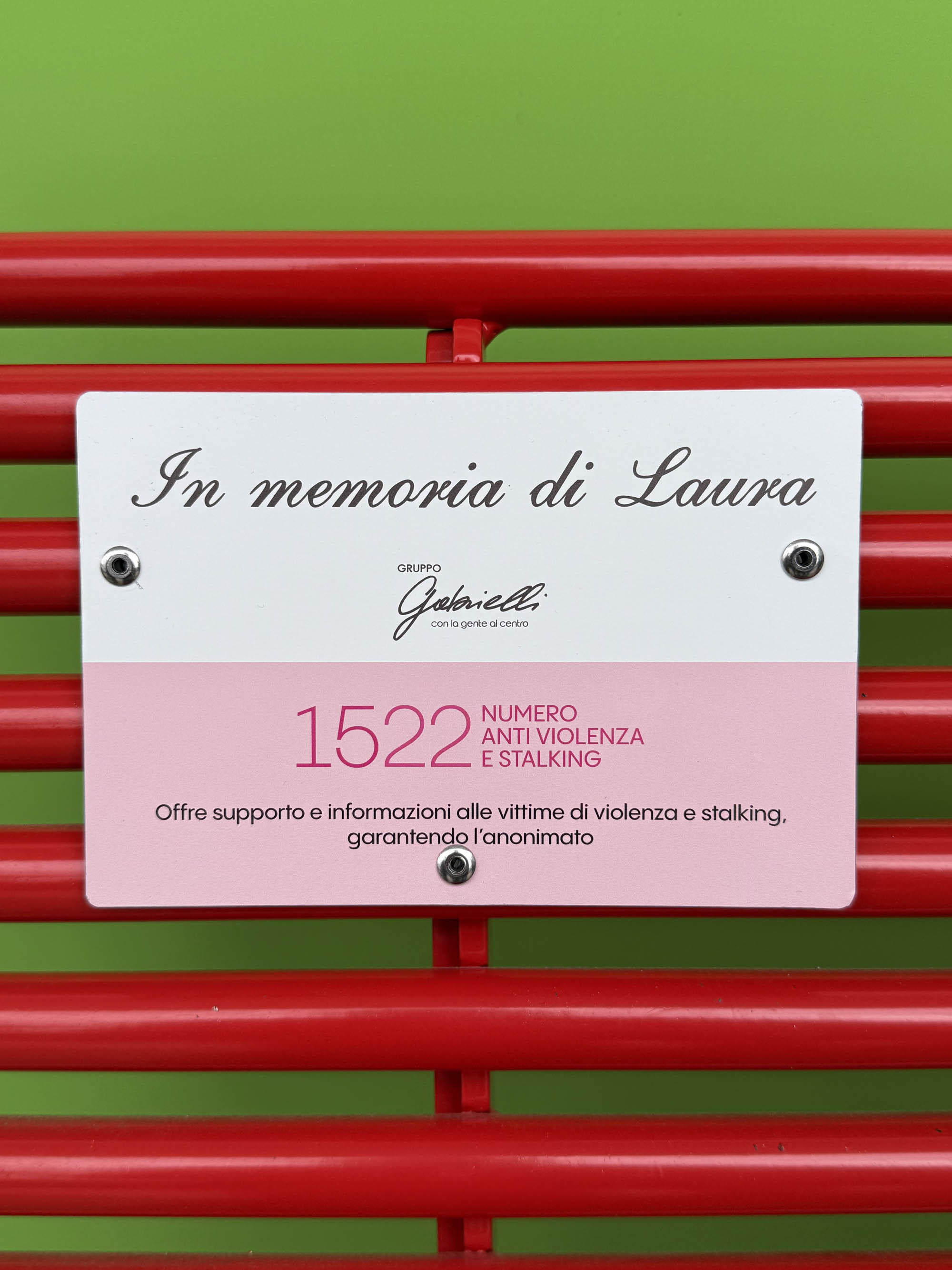 Una panchina rossa per Laura Papadia a un anno dall'omicidio | Foto - Tuttoggi.info