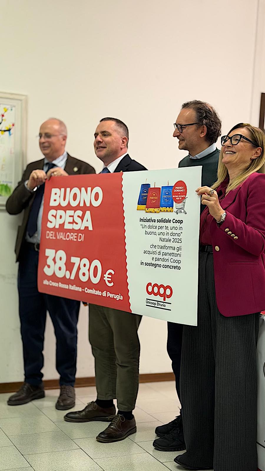 L’iniziativa prevedeva che per ogni panettone o pandoro a marchio Coop acquistato dai soci di Unicoop Etruria, la cooperativa ne destinasse uno, o il valore equivalente in buoni spesa, ad associazioni ed enti del territorio impegnati nel sostegno a persone in difficoltà. Un gesto di solidarietà che ha permesso di raccogliere una somma importante, che andrà a supportare concretamente l’attività della Croce Rossa di Perugia.