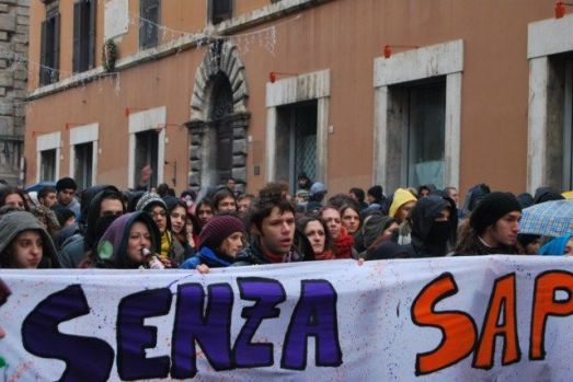 “Abbiamo schierato degli striscioni bianchi, per dire che non abbiamo parole di fronte a quanto sta accadendo”, ha invece detto la capofila dei precari, esortando i manifestanti a chiedere un'università “pubblica, libera”.
