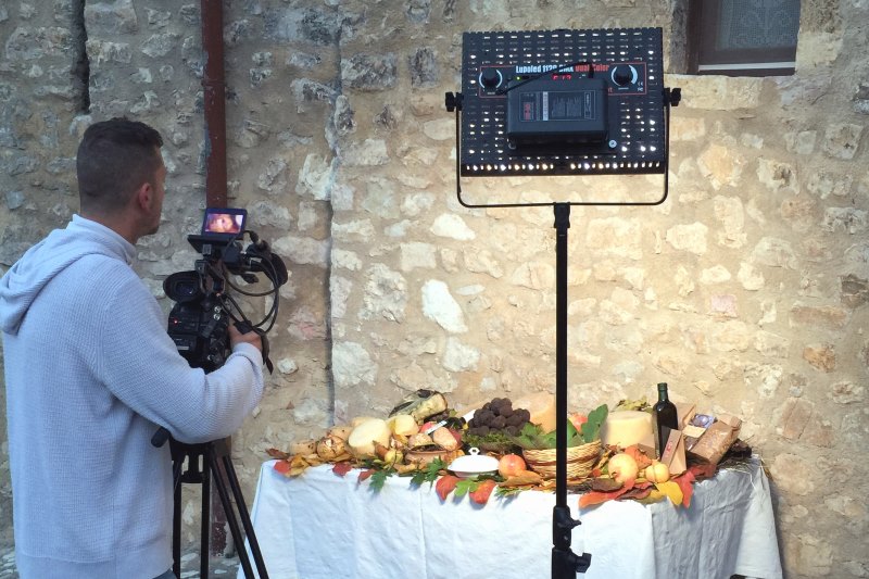 A parlare dei formaggi della Valnerina su Rete4, davanti al microfono della food blogger Francesca Minerbo, ha provveduto il gastronomo Renzo Fantucci; a preparare la giuncata l’azienda agricola Pucciotti, mentre i tartufi sono stati forniti da un’azienda di Vallo di Nera specializzata nel settore. Sulla tavola imbandita per l’occasione, colorata di foglie autunnali multicolori, c’erano i saporiti formaggi delle aziende aderenti al partenariato “Vallo di Nera – La terra dei racconti e dei sapori”. Accanto alla ricotta salata della Valnerina, che di recente è diventata presidio Slow Food, hanno fatto la loro bella presenza forme di pecorino piccante e formaggette variegate dalla diversa stagionatura, oltre a un particolare formaggio affinato nelle foglie di noce. Le telecamere si sono soffermate sugli scorci del paese riprendendo le pietre e le architetture medievali degli edifici, incorniciati dai versanti delle montagne rigogliose di vegetazione.