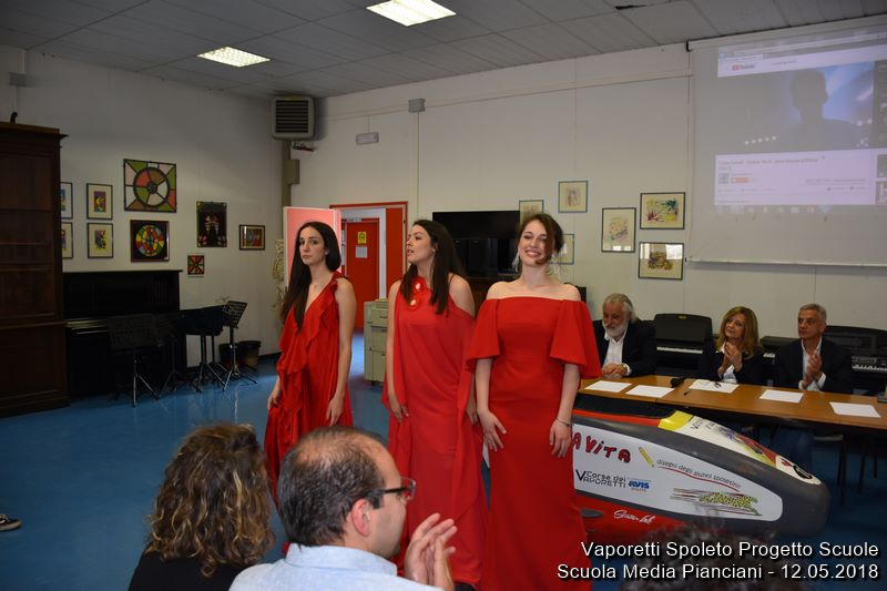 Come da prassi è toccato alla Dirigente Scolastica Dott.ssa Manuela Dominici fare gli onori di casa e presentare gli ospiti tra i quali ha preso la parola per primo Fabrizio Luchetti, Presidente del Comitato Organizzatore che ha orgogliosamente parlato del Progetto, che ha coinvolto tutte le scuole medie cittadine e gran parte degli istituti superiori e che ha prodotto 1098 elaborati, che vanno dai semplici disegni alla partecipazione di due equipaggi alla corsa under 18, dalla realizzazione di ben due vaporetti a quella dei vestiti per le finaliste del concorso Miss Vaporetto.