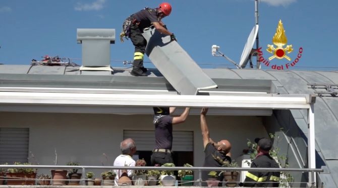 Le lamiere, infatti, erano state parzialmente divelte dal forte vento che si è registrato nella notte tra il 7 e l’8 luglio.