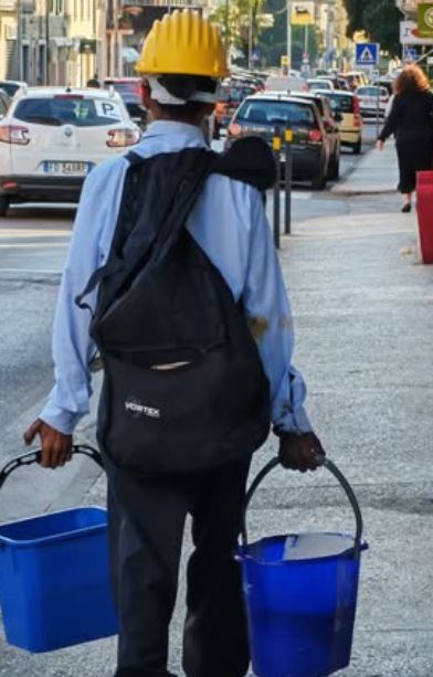 Secchi di vernice e catrame trasportati a mano, o sulla testa se pesanti. Quando in indossa il caschetto da lavoratore di cantiere. Solo che la donna che si incontra ormai quotidianamente sulle strade di Ponte San Giovanni non è un’operaia edile, ma quella che è ormai conosciuta come l’imbrattatrice seriale, che sporca con vernice o gomma liquida porte e finestre dei condomini, strade, auto in sosta.