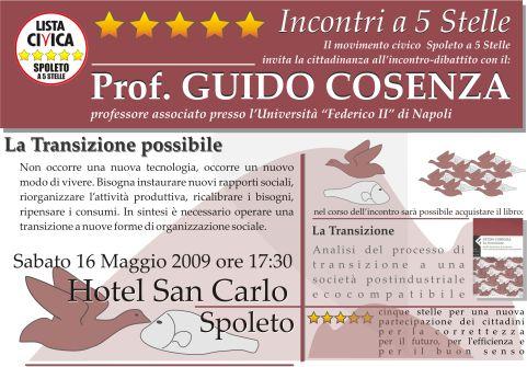 “Il prof. Guido Cosenza, prof. associato presso l'Università Federico II di Napoli si recherà a Spoleto sabato 16 maggio. L'incontro è aperto al pubblico e si svolgerà presso l'Hotel San Carlo, Spoleto, alle ore 17.30. Al suo intevento seguirà un dibattito con domande aperte da parte dei cittadini e degli studenti spoletini. Al termine dell'intervento sarà possibile comprare una copia del libro grazie alla collaborazione della libreria Il Corso.”