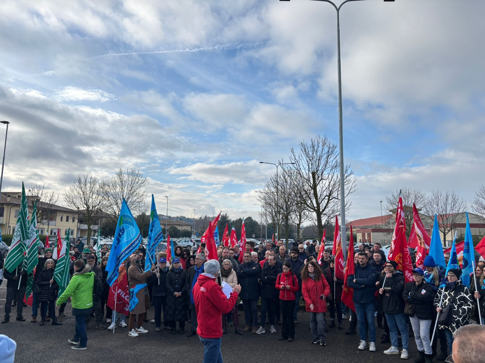 Oltre ai rappresentanti sindacali di Filcams, Fisascat e Uiltucs e delle organizzazioni confederali regionali Cgil, Cisl e Uil, erano presenti anche vari rappresentati delle istituzioni locali e regionali, con i sindaci Matteo Burico (Castiglione del Lago), che già nei giorni e mesi scorsi aveva ribadito la sua vicinanza alla lotta dei lavoratori, Fausto Risini (Città della Pieve), Luca Dini (Paciano) e Sandro Pasquali (Passignano sul Trasimeno) – anche a dimostrazione della preoccupazione per le conseguenze socio-economiche che un ridimensionamento di un’impresa importante come Unicoop Etruria potrebbe avere in questo territorio –, e i consiglieri regionali Cristian Betti, Fabrizio Ricci e Nilo Arcudi.