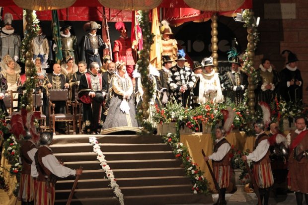 Uno dei più bei cortei storici d’Italia, uno spettacolo fortemente suggestivo che accompagna la processione religiosa del Corpus Domini. Si tratta di un corteo di oltre 400 figuranti, tutti uomini, che mette in scena l’Orvieto medievale, nel suo momento di massima espansione. Rosso e bianco, verde e bianco, giallo e blu, giallo e rosso sono i colori dei 4 quartieri della città che si ritrovano nei preziosi costumi d’epoca, nelle decorazioni floreali e nelle bandiere che decorano le strade in quei giorni di festa.