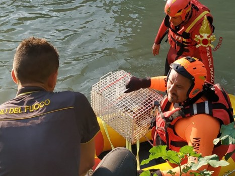 L’intervento dei vigili del fuoco è stato effettuato con tecniche fluviali: canotto di salvataggio ed una gabbietta per l’animale, due vigili del fuoco si sono avvicinati al felino e, con qualche carezza, sono riusciti a prenderlo ed a metterlo al sicuro per riportarlo a riva.