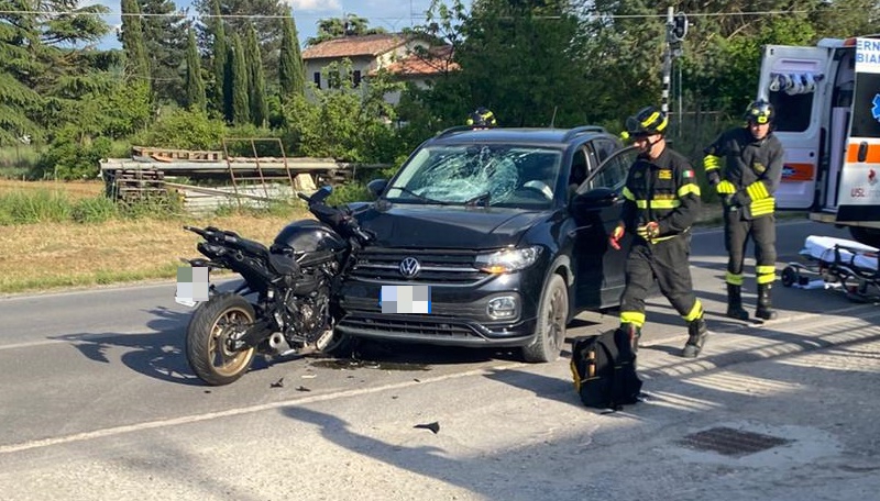 Al volante dell’auto sedeva una donna residente a Umbertide – ferita solo lievemente – mentre in sella alla moto vi era un giovane di Monte Santa Maria Tiberina, che ha avuto la peggio.