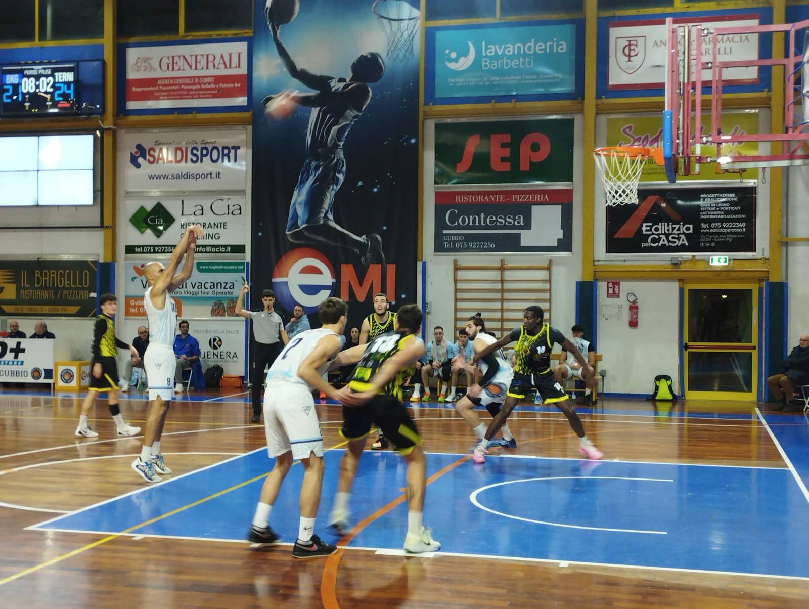 Nel secondo quarto l’attacco eugubino fatica a trovare ritmo, mentre Carenza e Marra guidano il break ternano che vale il nuovo +7 ospite. Arriva però una reazione d’orgoglio del Basket Gubbio, che con quattro punti consecutivi si riporta a contatto. All’intervallo lungo il punteggio è 34-31 in favore di Terni.