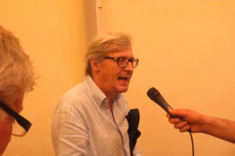 Vittorio Sgarbi è stato accolto come un vero e proprio eroe dalla comunità tifernate, incantata dalla colorita e appassionata lezione del critico d’arte. L’ospite d’onore, prima di parlare dell’artista tifernate, ha fatto un lunghissimo proemio che ha spaziato dalla polemica sul crocifisso nelle aule delle scuole, a cui lui stesso ovvierebbe apponendo sul muro una riproduzione del Cristo morto di Mantegna, “sfidando” chiunque a far rimuovere un opera d’arte “più grande della religione”, alla speranza che l’Unesco convochi un consiglio di sicurezza per presidiare siti archeologici messi in pericolo dalla guerra come quello della città di Palmira in Siria.