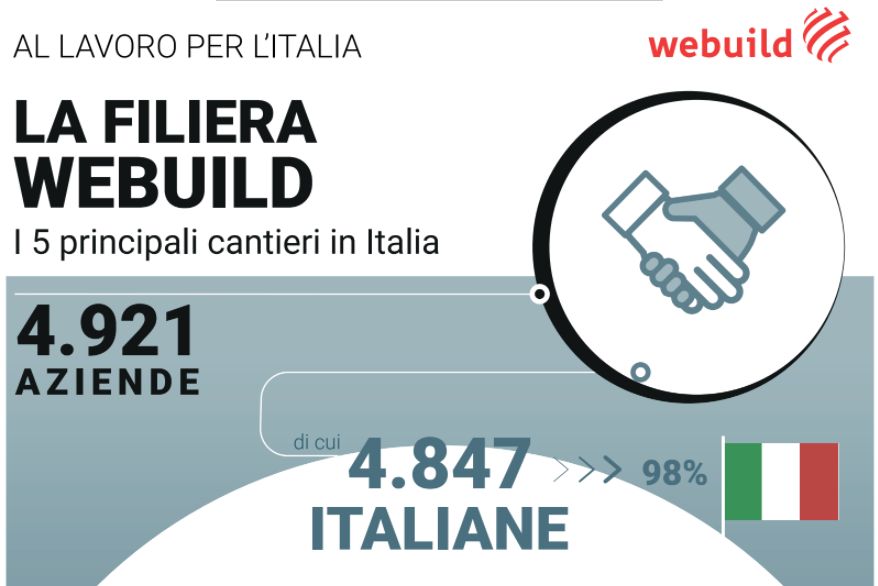 Le 5 mila aziende attive nei più importanti cantieri italiani di Webuild sono rappresentate al 98% da imprese italiane.