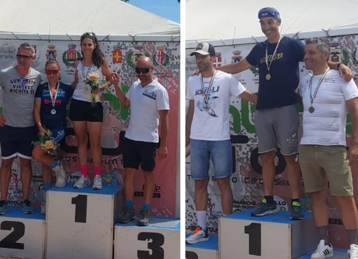 Moglie e marito sul podio a San Venanzo (TR) alla XCO Marsciano 2022, evento di cross country, particolare disciplina di mountainbike.