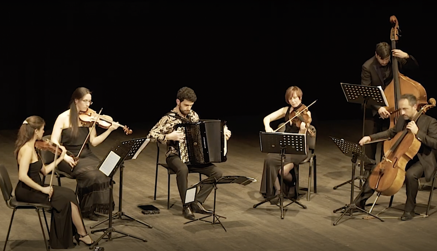 Il concerto ci condurrà in una suggestiva interpretazione dei temi più noti del celebre bandoneonista argentino Astor Piazzola – da Cuatro Estaciones Porteñas a Adiós Nonino passando per Oblivion – intervallata dall’esecuzione di composizioni per fisarmonica e quintetto d’archi scritte dal giovane e già consacrato artista romano.